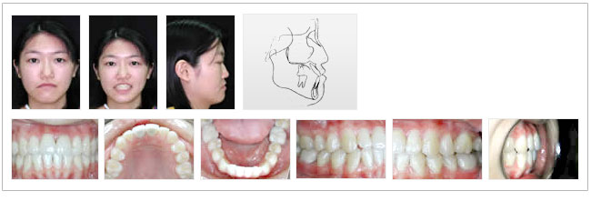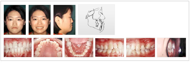 | 初診及主訴:患者年齡20歲6個月 性別:女 主訴:前牙倒咬及牙齒排列不整 家族及過去病史: 與母親同樣皆有戽斗的現象,且母親有嚴重的牙周病。患者本身有拔牙、補牙及洗牙的經驗。至於身體方面則沒有系統疾病也無食物及藥物過敏紀錄。 |