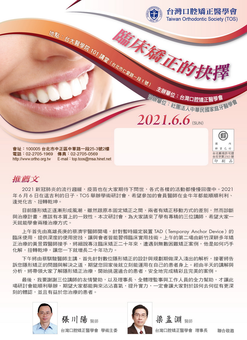 日臨床矯正的抉擇演講,確定延期舉辦。待疫情穩定再擇期辦理,造成不便,尚祈見諒。並敬祝平安,謝謝
