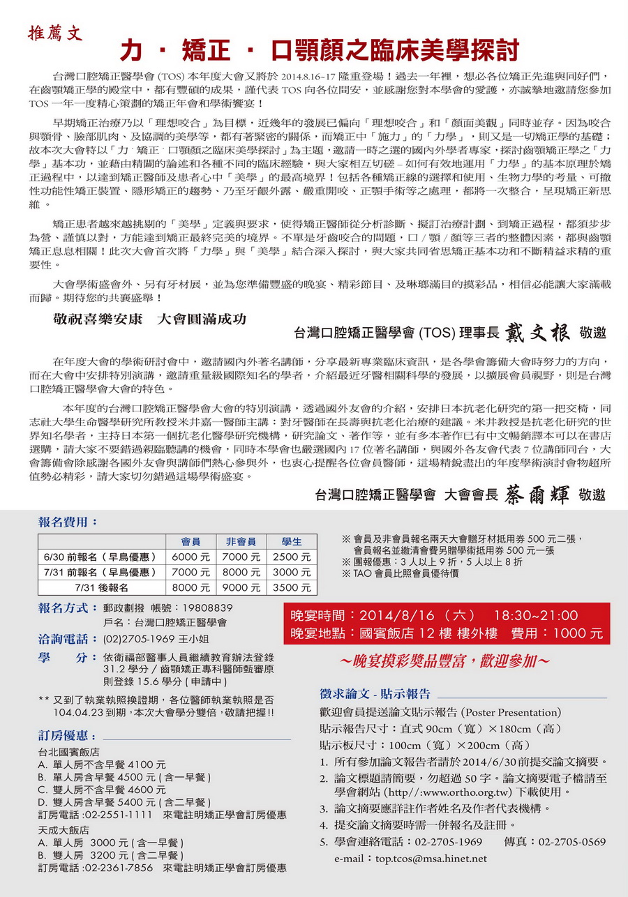 2014.08.16-17台灣口腔矯正醫學會2014年度大會曁學術演講