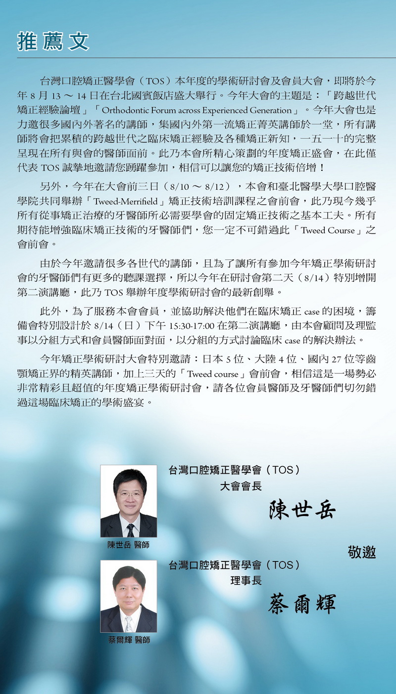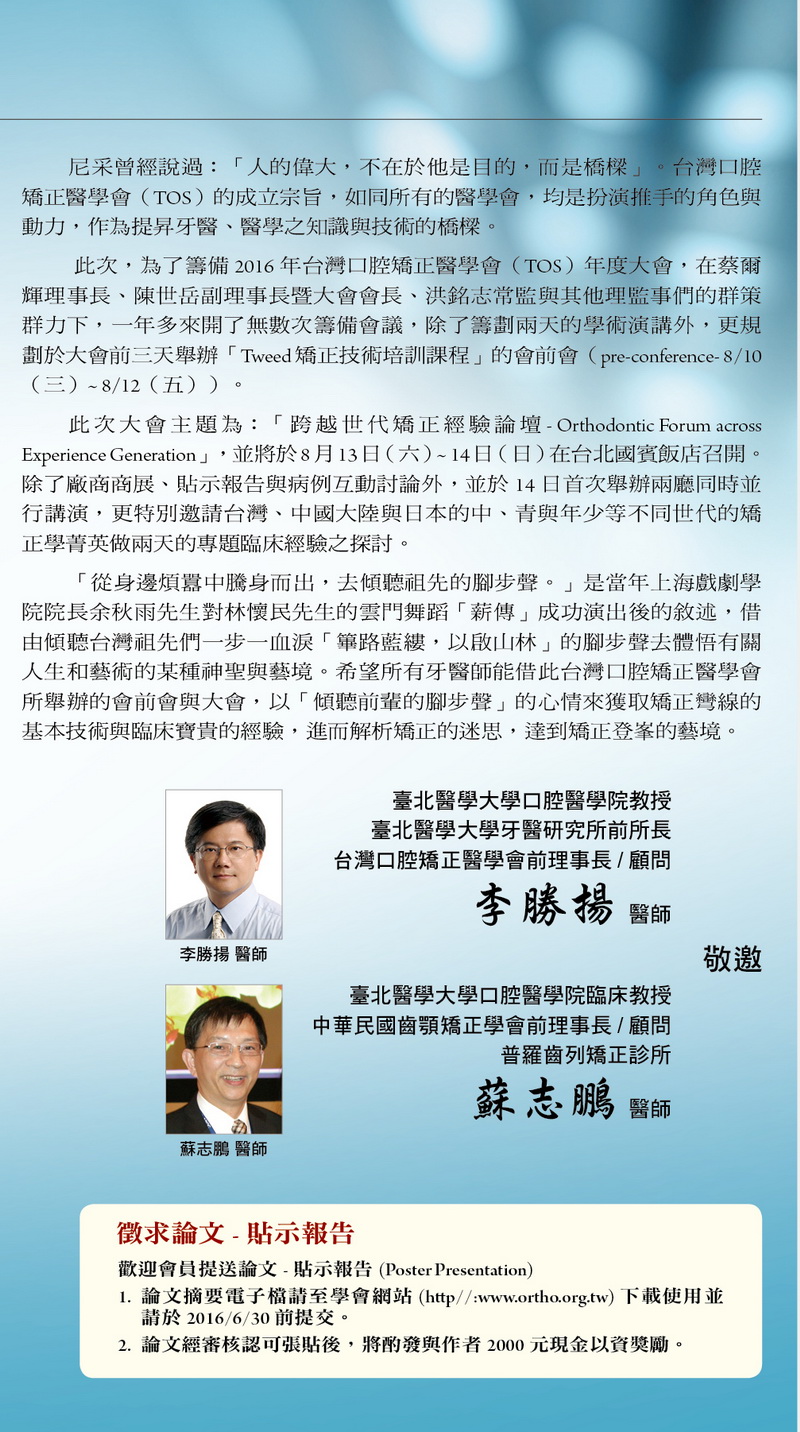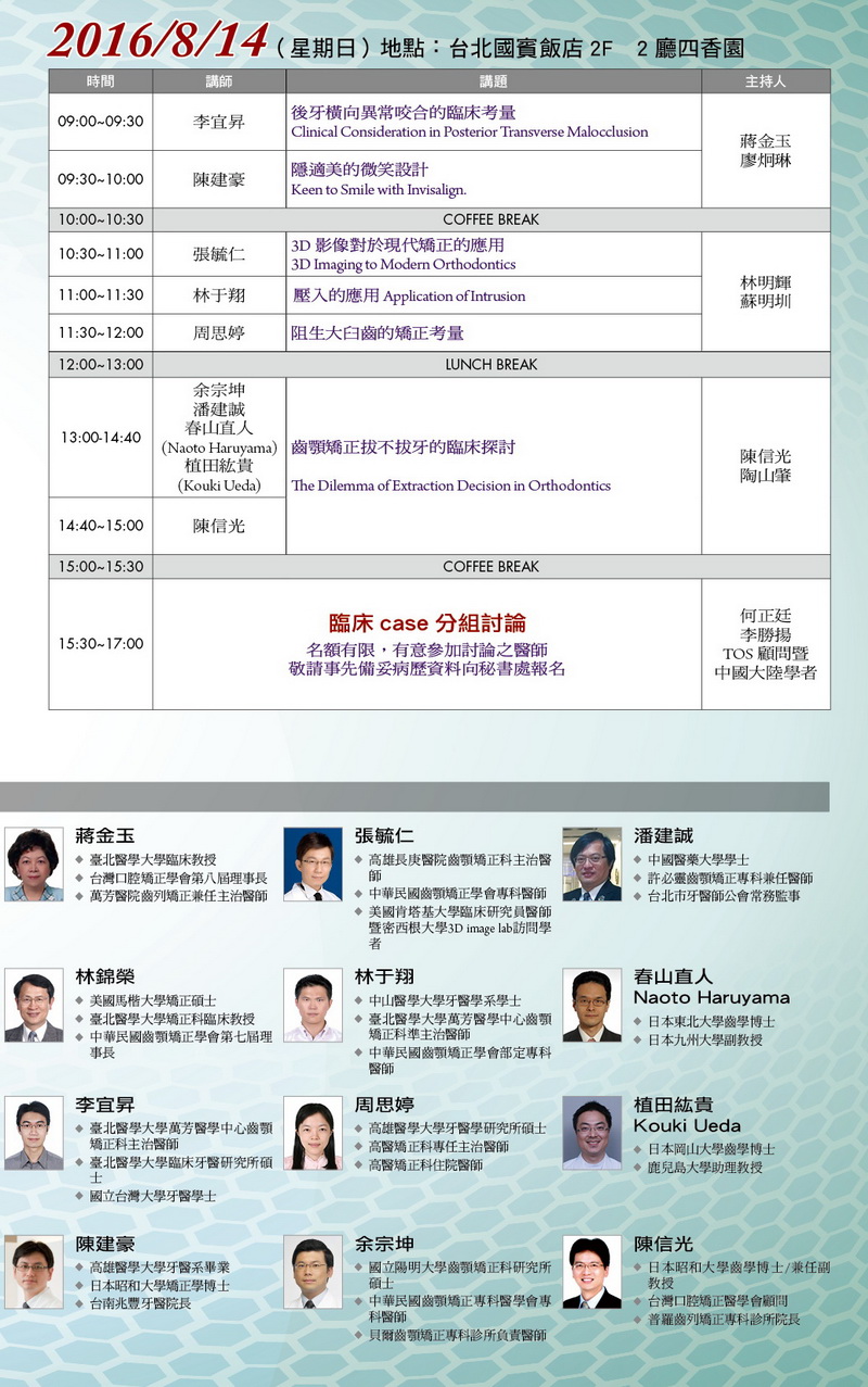 2016.08.13-14台灣口腔矯正醫學會2016年度大會曁學術演講