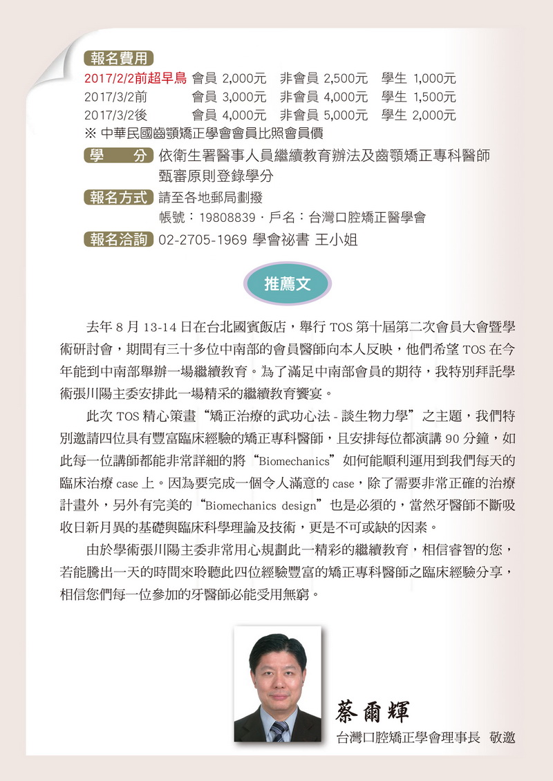 2017.03.12矯正治療的武功心法-談生物力學Biomechanics in my daily practice